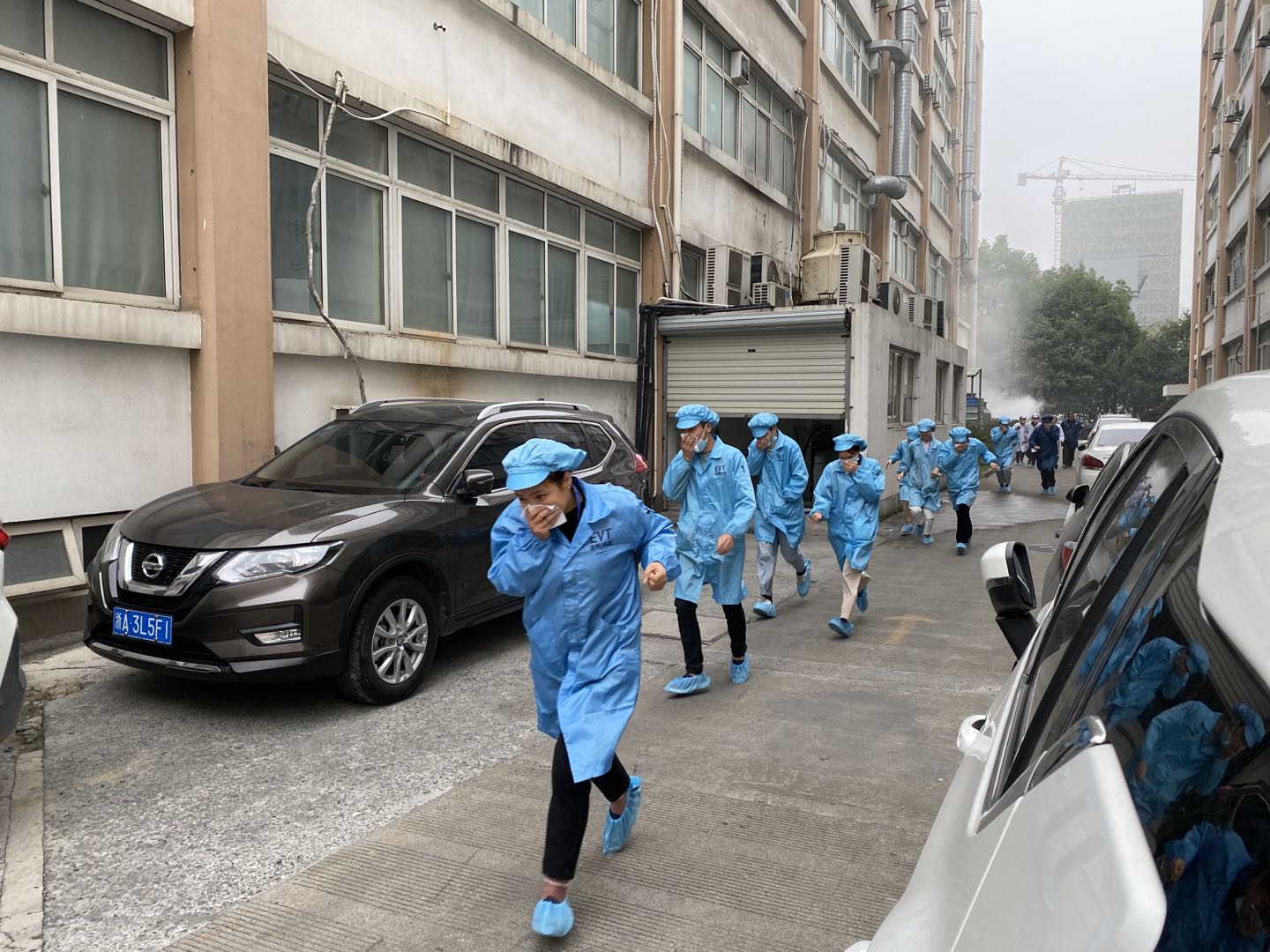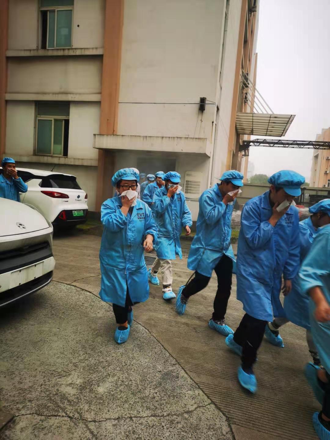 隨著警報(bào)響起,員工們紛紛有序地從辦公區(qū)域向指定安全區(qū)域轉(zhuǎn)移。